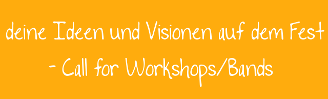 Es kann also ab sofort unterstützt werden, um das Fest durch freien Eintritt für alle zugänglich zu machen. Damit können wir auch den WorkshopleiterInnen und MusikerInnen eine angemessene Wertschätzung geben!