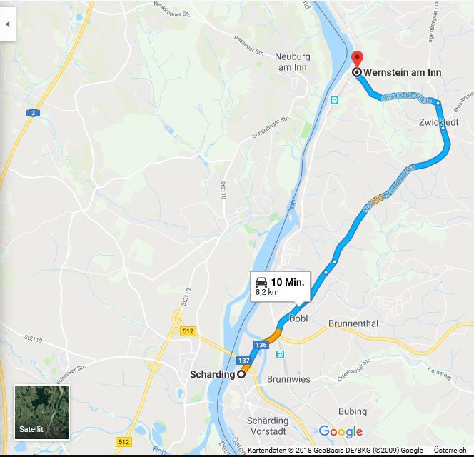 von Schärding Richtung Wernstein gehts nur über die Schärdinger Straße Richtung Zwickledt